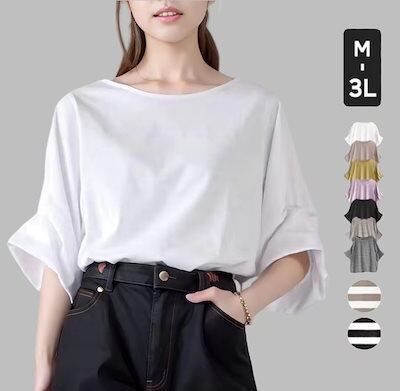 人気 夏 tシャツ ボーダー柄 シンプル インナー トップス ニット 半袖 レディース 大きいサイズ ロングTシャツカットソー ロンt Tシャツカットソー オフィス スポーツ
