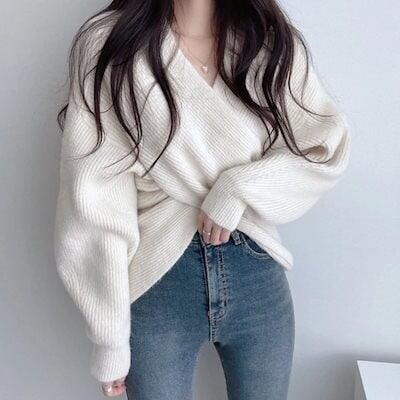 ゆったり エレガント クロス プルオーバーデザイン 柔らかい 長袖 セーター ニットカーディガンラウンドネックニット ベーシックニット人気なリプニット