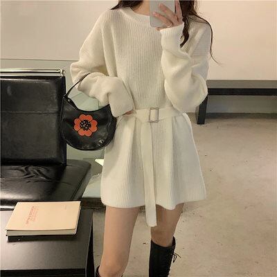 春 ニュースタイル 気質 怠惰 ニット ワンピース 着痩せ 高級感 長袖 ワンピース チュニック 母の日のプレゼントベーシックニット人気なリプニット