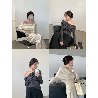 タートルネック春 ニュースタイル ボートネック 体型カバー オフショルダーネック おしゃれ 流行り 着痩せ ニットカーディガン ベーシックニット人気なリプニット