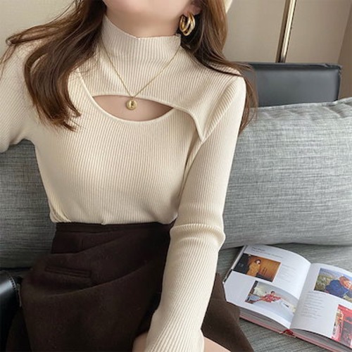 【2枚購入で 2oo円OFF!】2023秋冬 新作 おしゃれ ハイネック インナー セーター アンダーウェア トップス アウター 大きいサイズ 長袖 タートルネック ベーシックニット人気なリプニット