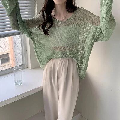 2024新作 おしゃれトップス 韓国ファッション 長袖ブラウス 体型カバーチュニック レディース ブラウス 長袖 体型カバー 紫外線対策 UVカットリネン素材人気なリプニット