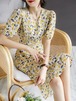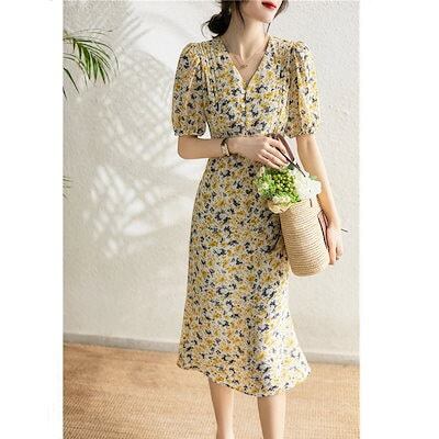 0代40代ワンピース 秋冬新作 長袖ワンピース きれいめ 花柄ワンピース シフォン フレアスカート 通勤リネンワンピ