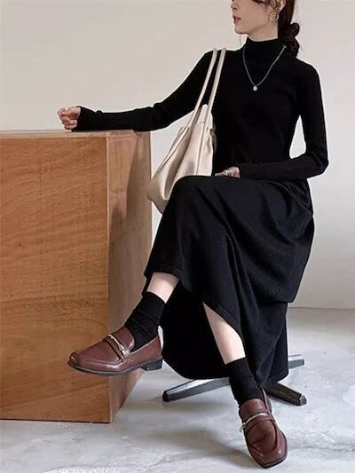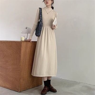 ロング丈 秋 ワンピース レディース 長袖 ロングワンピース