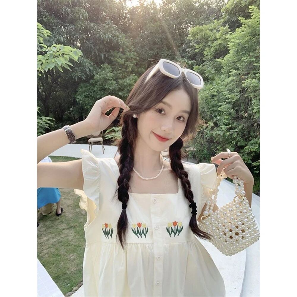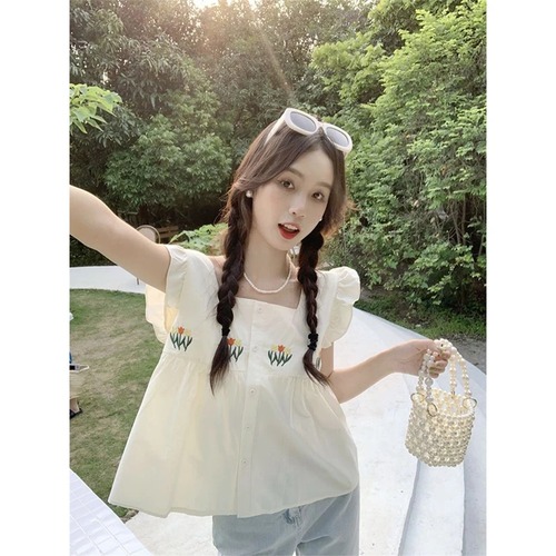スクエアカラーの女性用半袖シャツ,刺embroidered,ファッショナブル,カジュアル,すべてにマッチ,上質なトップス,夏服 T240926052543_01