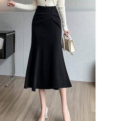 2024 人气 秋 新作 ミディアムスカート ウールのスカート ミディアム A字スカート タイトスカート フレンチスカート 百掛け やせて見える 韓国ファッション 韓国ファッション