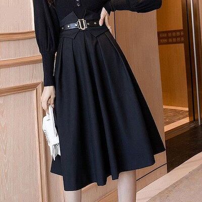 2024 人气 秋 新作 ロングスカート スカート レディース 春と秋 新作 ウエストベルト 薄手 半身スカート ミドル丈 韓国ファッション