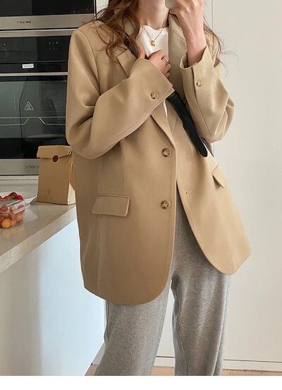 2024 人気 秋 ジャケットスモールブレザーレディース 秋の新作韓国版ゆったりカジュアル着やせ気質デザインカーキスーツ