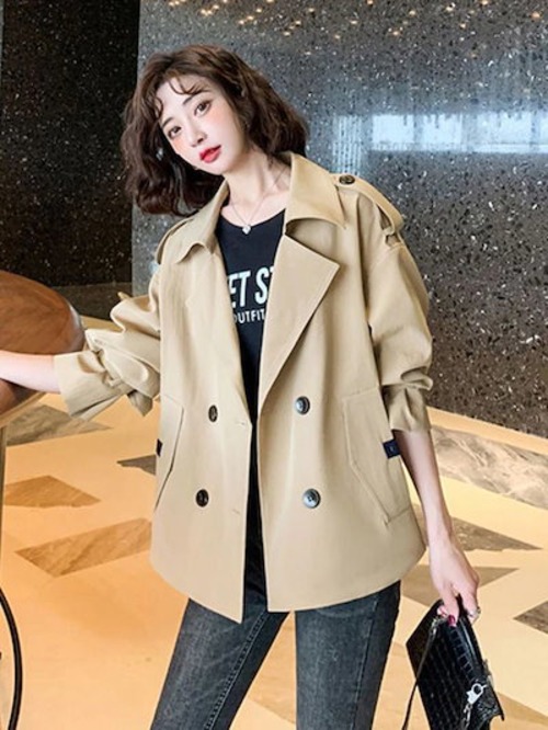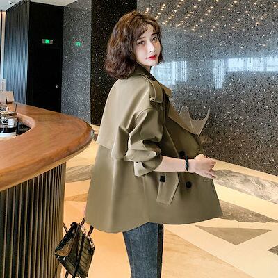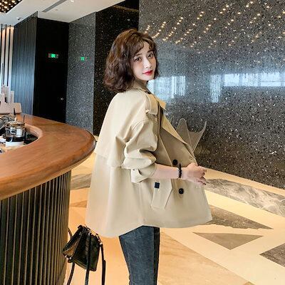 2024 人気 秋 トレンチコート 短いセクションのウィンドブレーカージャケット女性 新作 スーツカラー ロングスリーブ トップス ルーズ ジャケット