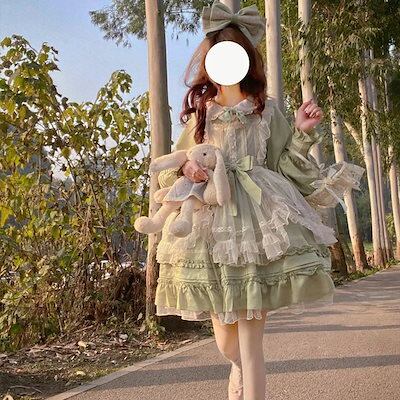 2024 ロリータ ドレス オリジナルデザイン洋装かわいい長袖opワンピース女 花火大会 コスプレ ワンピース ロリータワンピース