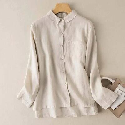 綿麻シャツ ブラウス 春秋 レディース トップス きれいめ 通勤 長袖 オフィス 体型カバー 通気性 大きいサイズ ゆったり ポケット付き お洒落 薄