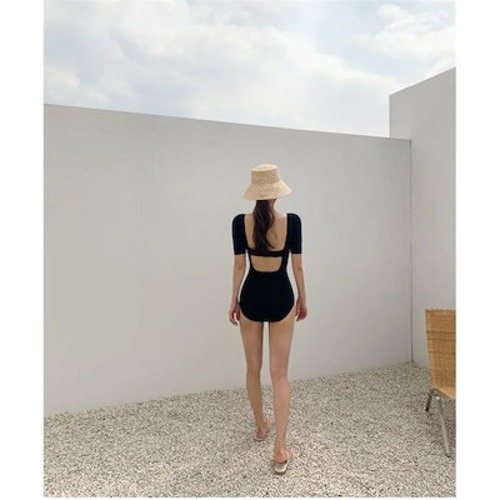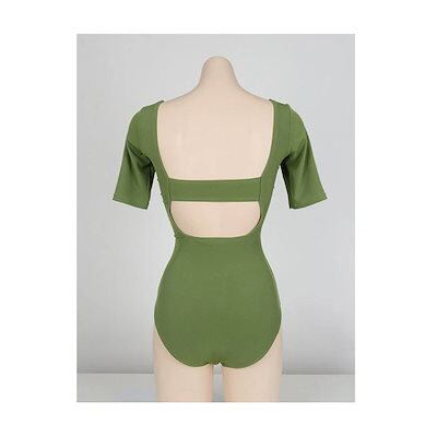 水着 レディース ワンピース水着 フィットネス水着 オールインワン バックレス 胸パッド付 ビーチウェア ママ水着 ぽっちゃり 着痩せ 無地 プール