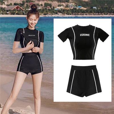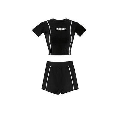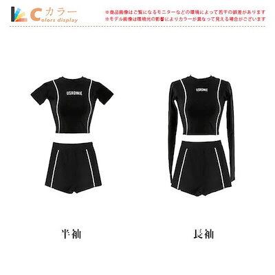 フィットネス水着 レディース 上下セット 競泳水着 セパレート 半袖 長袖 英字 伸縮性 速乾性 温泉 パッド付き ラウンドネック 上品 可愛い