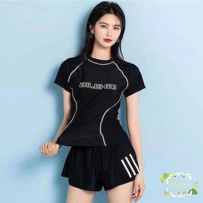 フィットネス水着 レディース 体型カバー フィットネス スイムキャップ セット 半袖 めくれ防止 ジム プール 競泳水着20代 30代 40代 50代