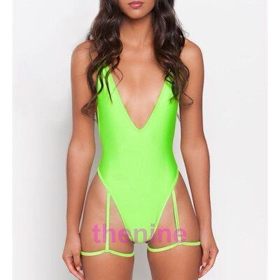 水着 ワンピース スイムウェア レディース レオタード風 深Vネック ハイレグ 紐 女性下着 コスチューム