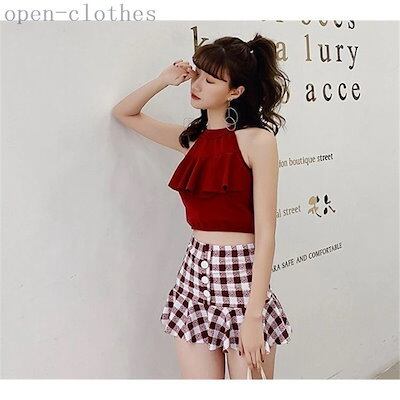 水着 レディース ビキニ 体型カバー 2点セット セバレート タンキニ スカート チェック柄 ハイウ