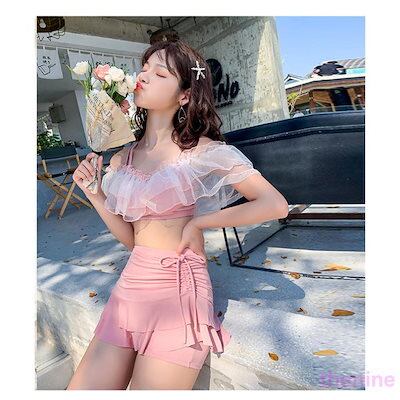 水着 レディース ビキニ 体型カバー 韓国 ショートパンツ付き レース 大人ママ水着 かわいい 可愛い 盛れる おしゃれ カバーアップ 温泉 プール セパレート 露