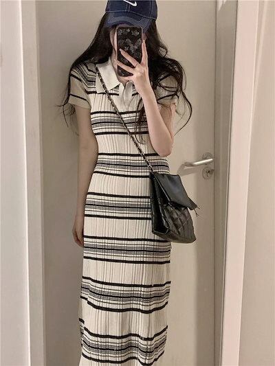 レトロ ニットワンピース レディース 夏 スリミング ワンピース セミロング ワンピース カップ 付きインナー