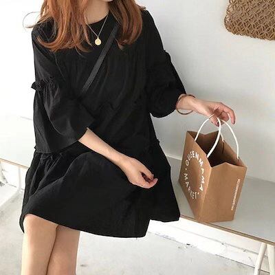 ワンピース 無地 春夏 新作 ゆったり ワンピース 着痩せ 可愛い ワンピース 韓国 カップ 付きインナー