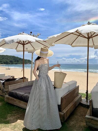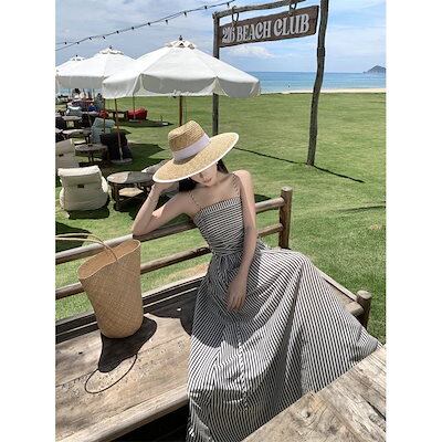【森.ガール】 ボヘミア 旅行 キャミワンピース ビーチ ロングワンピース 撮影 前撮り 森ガール/ロングストライプ/ビスチェ セットアップ カップ 付きインナー