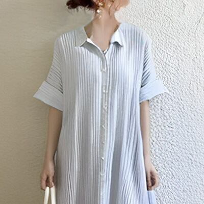 2024/夏/新作/雰囲気/ストライプ/プレスプリーツ/シャツ/カジュアル/シャツワンピース ワンピース カップ 付きインナー