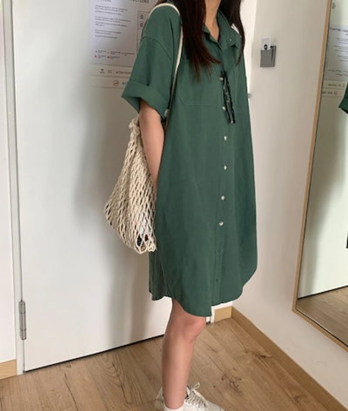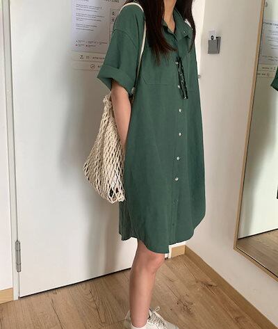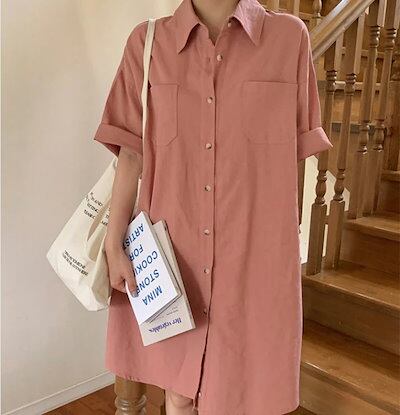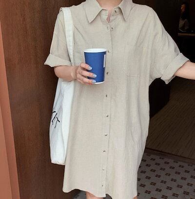新作/怠惰な風/ミディアム丈/コットンリネンワンピース/2024/夏/ゆったり/万能/シャツワンピース カップ 付きインナー