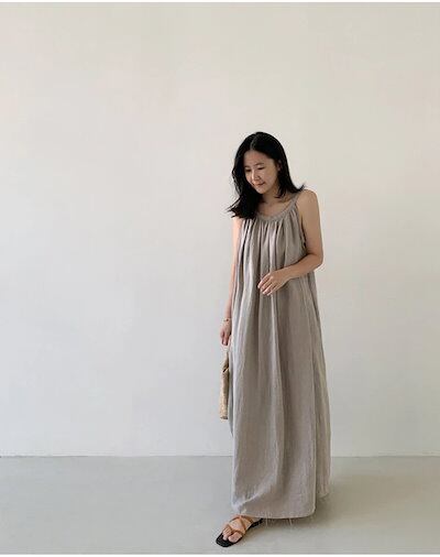 夏/新作/ノースリーブ/ホルタードレス/韓国版/ゆったり/薄手/膝/Aラインドレス/ロングホリデードレス カップ 付きインナー