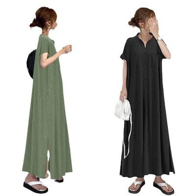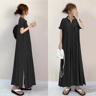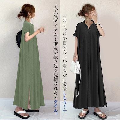 夏/新作/ワンピース/日本人/気質/通勤/ゆったり/半袖/Aラインスカート/ロングスカート/女性/カップ 付きインナー