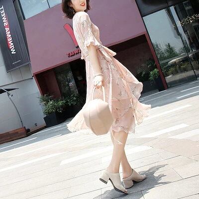 「ファットガール」 春夏 柄ワンピース シフォン 「S-5XL」ロングワンピース 大きいサイズ 体型カバー ボヘミア 着痩せ レディースワンピース メガ割