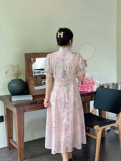 【ぽちゃまに】 夏 中華風 ワンピース 大きいサイズ レトロ レース 体型カバー 長/短2タイプ チャイナドレス 柄ワンピース メガ割