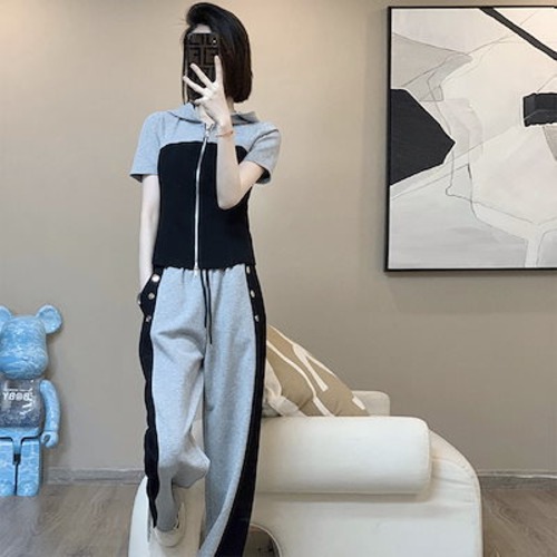 2024夏 運動 二点セット 着痩せ セットアップ レディース カジュアル 夏服 日焼け防止 ゆったり キャミソール ロングズボン ルームウェア 韓国ファッション