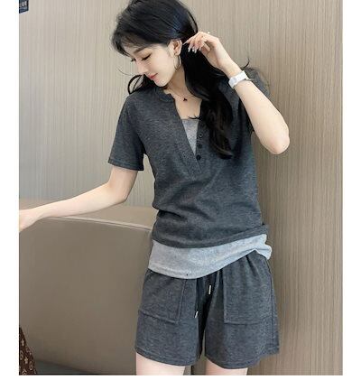 2024夏 着痩せ セット 二点セット 運動半袖 カジュアルショットパンツ 薄手 カジュアル ゆったり キャミソール ショットパンツ ルームウェア 韓国ファッション