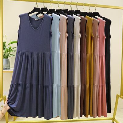 【2枚購入で 2oo円OFF!】アイスシルク 半袖 モダール ロングワンピース レディース 夏 ホームウェア 薄手 接触冷感 韓国 ワンピース リゾートワンピース レディース ファッション キャミワン