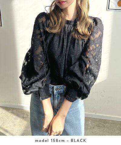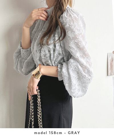 ブラウス 白 長袖 ノーアイロン 黒 カジュアル フォーマル オケージョン 入学式 バルーンスリーブ オフィスカジュアル 韓国ファッション YP/ ジャガードフ