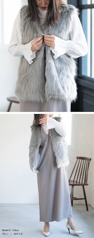 ファーベスト フェイクファーロングベスト ファーロングジレ ロングファーベスト ポンチョ ショール カーディガン パーティー カジュアル ファーベスト リアルファー レイヤード