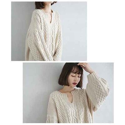 新作 キーネック ニット ケーブル編み セーター プルオーバー レディース 長袖 Vネック