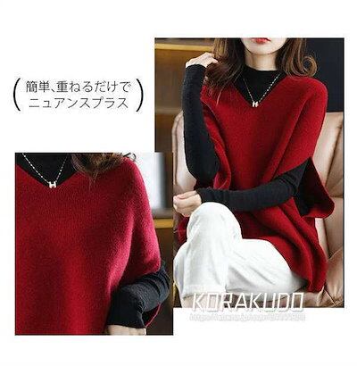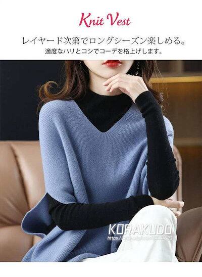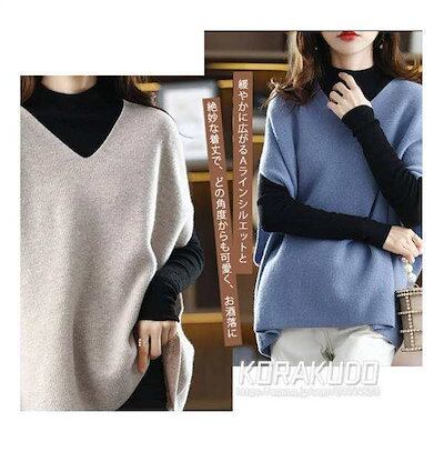 ニットベスト レディース 秋 冬 Vネック トップス ベスト ニット ドロップショルダー ノースリーブ