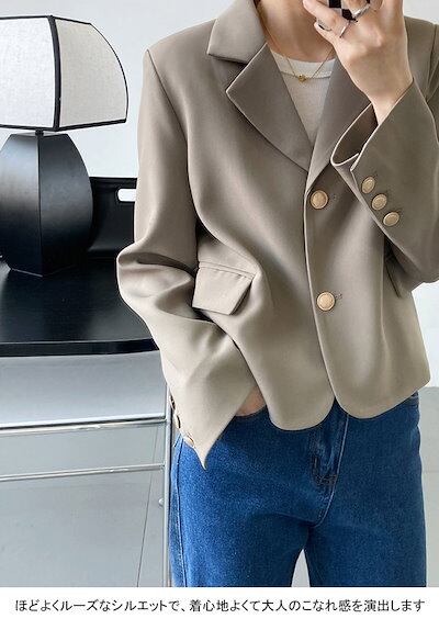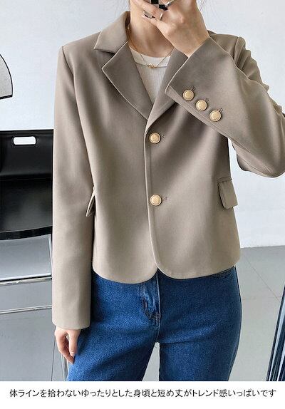 スーツジャケット レディース アウター 無地 折り襟 長袖 ショート丈 トップス カジュアル