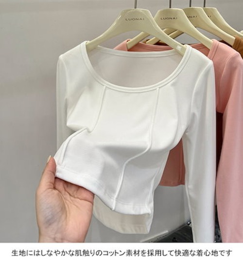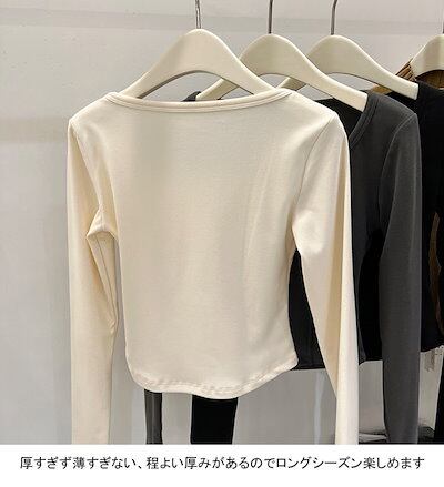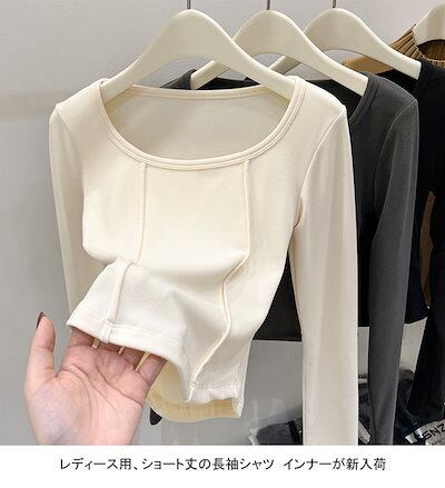 長袖シャツ レディース インナー 無地 クルーネック ショート丈 不規則 通気性 ストレッチ性