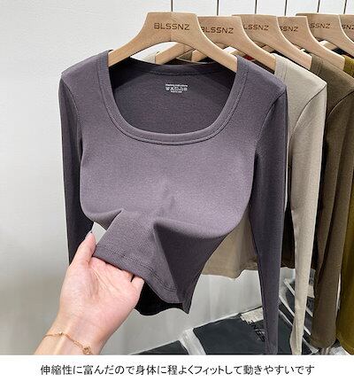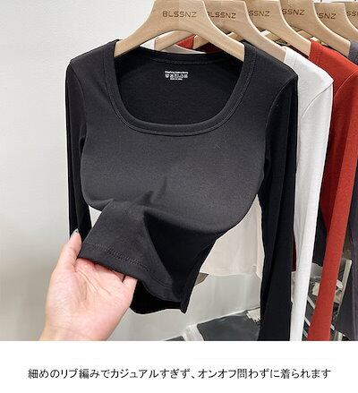長袖シャツ レディース インナー リブ編み 無地 Uネック ショート丈 通気性 ストレッチ性