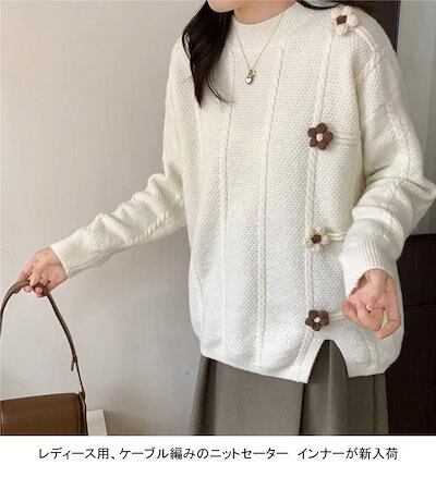 ニットセーター レディース インナー クルーネック 長袖 花モチーフ 伸縮性 プルオーバー トップス