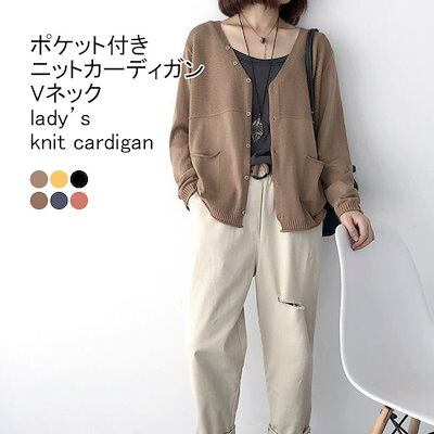 ニットカーディガン レディース ライトアウター 無地 Vネック 長袖 前開き トップス カジュアル