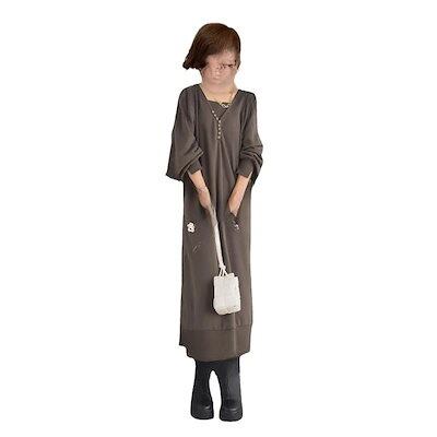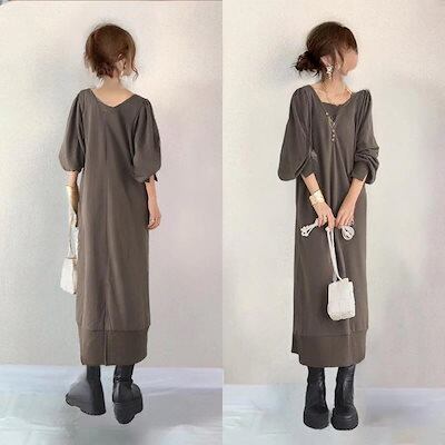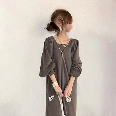 2024/春/夏/新作/Vネック/ゆったり/ワンピース/長袖ワンピース/ロングワンピース/ゆったり/大きいサイズ