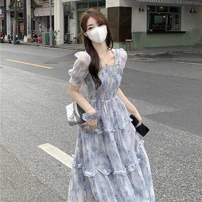 夏 新作 ティーブレイクドレス ワンピース フレンチ ワンピース 花柄 温柔 シフォンワンピース 気質 百掛け 切り替え 着やせ