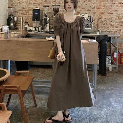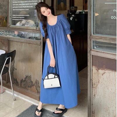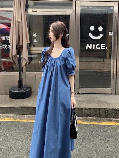 夏 新作 ワンピース パーティードレス パーティー 半袖 ワンピース 気質 ブラウス ワンピース ロング ランタンスリーブ プリーツ Aライン ゆったり 体型カバー