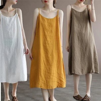 ヘビロテ! キャミワンピ ノースリーブ リネンワンピース 夏 キャミワンピ 無地 百掛け キャミソールワンピース レディース 着痩せ ロングワンピース/シャツワンピース母の日