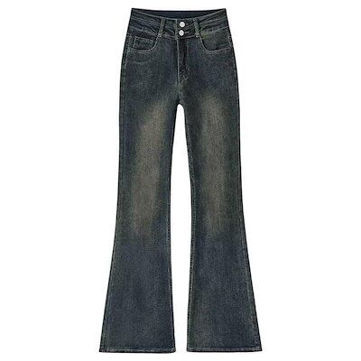 デニムパンツ女性の春と夏の新しいハイウエストの薄い小さなサブレトロファッションフレアパンツ