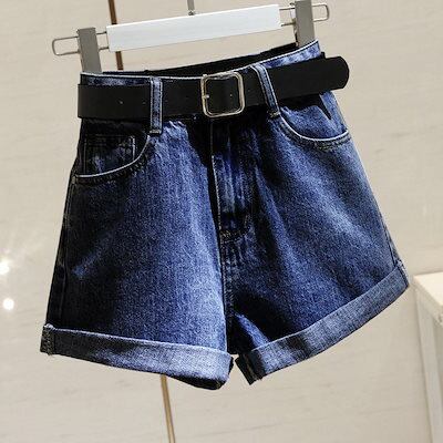 ショートパンツ ハイウエストデニムショートパンツ女性2024新しい韓国版の緩い薄いロールワイドレッグショートパンツ