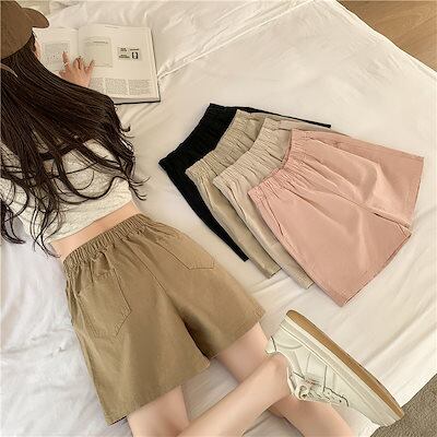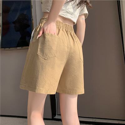 ショートパンツ ゴム ハイウエスト ワイドパンツ ゆったり 薄手 カジュアル ウォッシュド コットン ショートパンツ レディース 夏