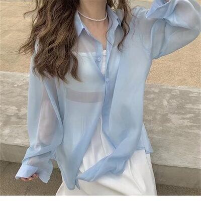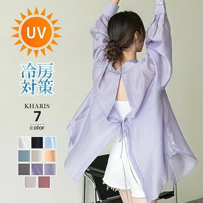今っぽシアーシャツ2024夏の新しい韓国版バックオープンタイ長袖薄手シャツルーズサンシャツ